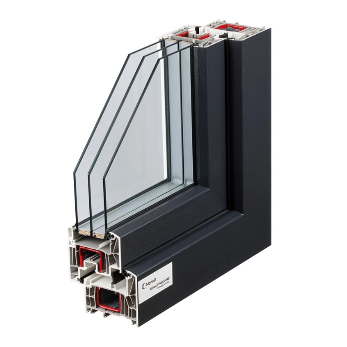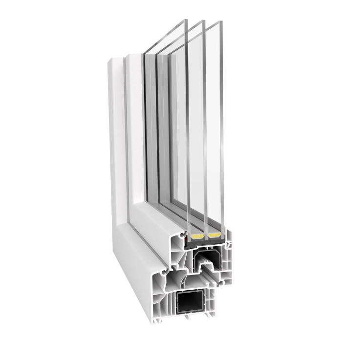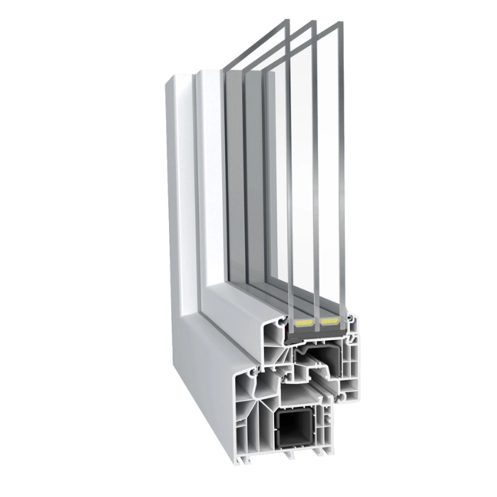 Nowoczesny system okien PVC zapewniający dobrą izolację cieplną i stabilną konstrukcję profilu.